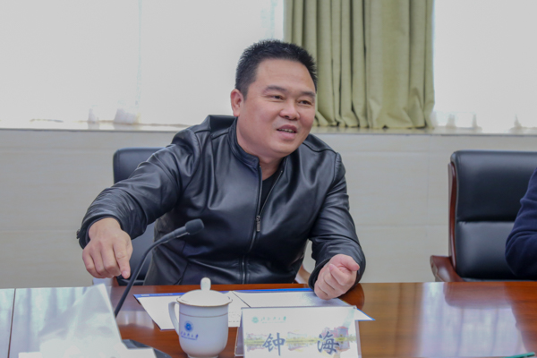 陈锦山副书记详细介绍学校的发展历程、办学特色、办学规模、师资力量等情况