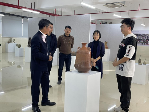 结合美术馆展出的坭兴陶柴烧艺术创新作品,陈锦山指出,坭兴陶作为传统工艺,在艺术工作者的创新创作中,有了崭新的构思、全新的表达,生动表现出中国文化、中国精神,焕发出新的生命。在这个伟大的新时代,未来的艺术工作者更需要深入生活、体察时代,在艺术提炼与思想升华中,使视觉表达与社会发展同频共振,用创新艺术作品彰显当代中国的蓬勃气象,彰显文化自信。他希望同学们树立远大理想信念,扎实学习专业知识,与党同心同德、与人民同向同行,在艺术创作、践行美育等方面作出积极贡献。