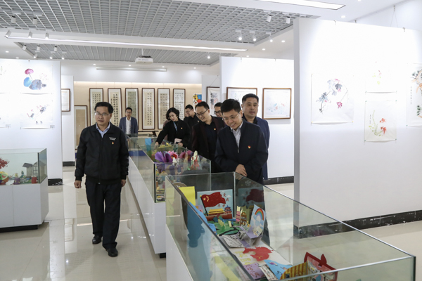 韩峻峰一行先后参观了学院的廉政文化粉笔字展、党史学习环创展、党史学习书画展、一流本科专业建设周末大舞台图片展等,并详细了解了学院的党建工作、人才培养、教学科研、队伍建设、素质教育等方面的建设发展情况。