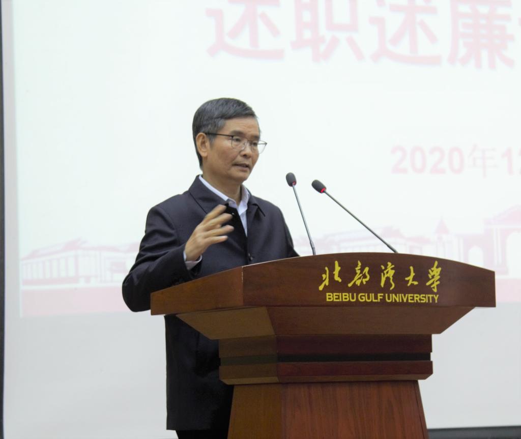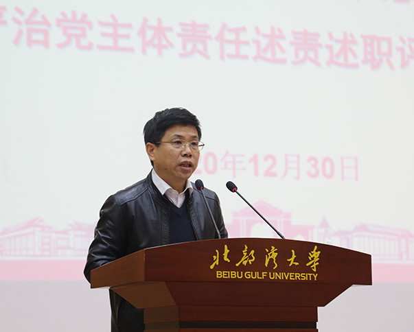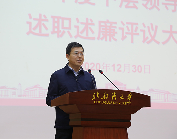 12月30日,学校召开2020年二层机构领导班子和中层领导干部年度工作述职测评会议。党委书记韩峻峰,校长林基明,党委副书记陈锦山,副校长曾彥、黄鹄、唐高华、陈磊,纪委书记覃宇环,总会计师梁智出席测评会。会议由党委副书记陈锦山主持。