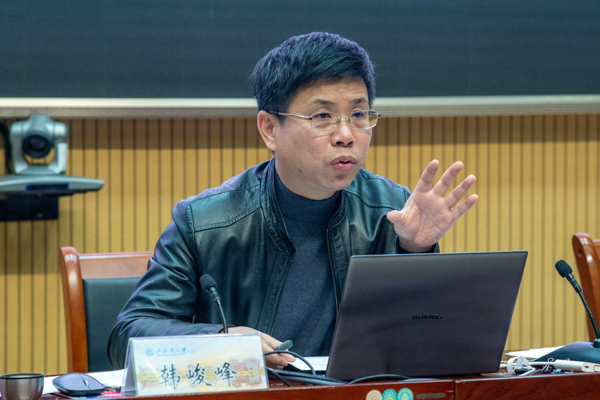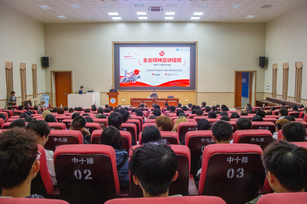 12月22日晚,学校校长韩峻峰在12号教学楼204教室以“感悟十九届五中全会精神”为主题,为湾大学子讲授了一堂举旗定向、精彩深刻的形势与政策课。马克思主义学院部分教师参与旁听。