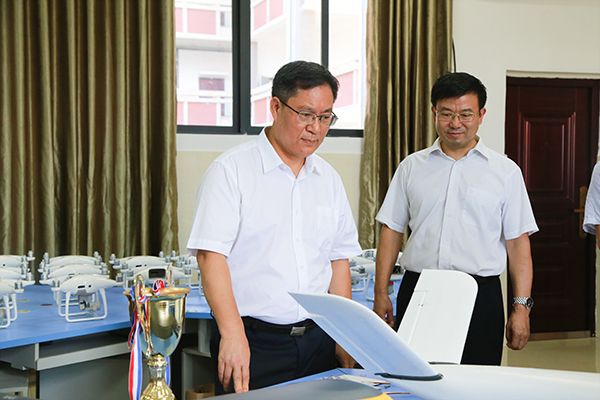 赵君书记(右)、高朴副书记(左)参观无人机实验室