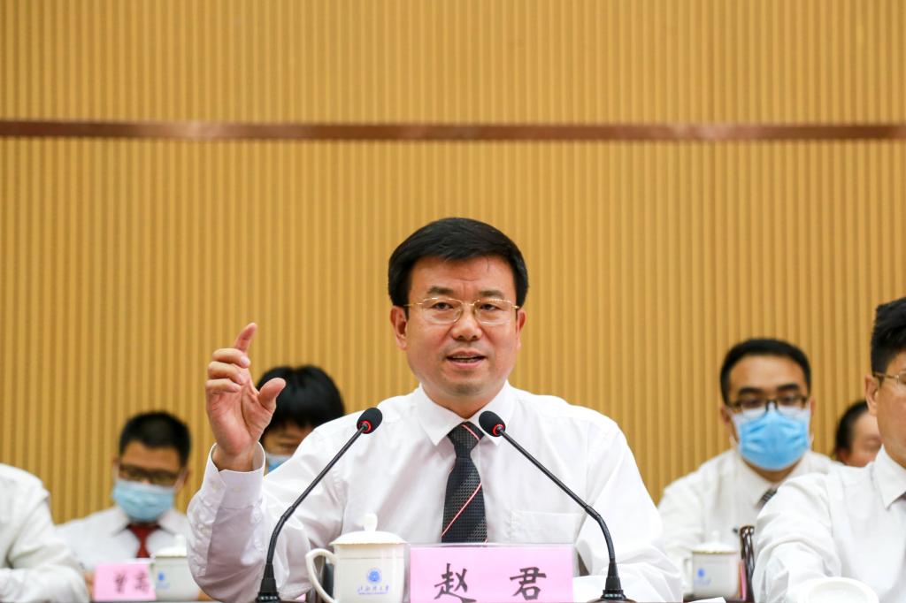 赵君书记在讲话中就如何落实好会议精神,完成好2020年目标任务提出了三点意见。一是不忘来时路,在砥砺前行中发扬“湾大精神”。赵书记用学校发展历程中的三次跨越诠释了“敢于向困难说不、敢于挑战不可能、敢于自我革新”的湾大精神特质。他说,我们要倍加珍惜砥砺奋进中积累的宝贵经验,并在实践中不断丰富和发展。二是立足当前路,在挑战和机遇中坚定发展信心。赵书记指出,学校越是发展,面临的困难和挑战就越大,只要全校师生团结一致,坚定信念,变压力为动力,抢抓机遇,就一定能克服暂时的困难,一定可以大有作为。三是共创辉煌路,以民生建设为重点推动学校内涵发展。赵书记强调,要以攻坚克难的勇气破解民生难题、要以高度的历史责任感推进民生工程建设、要以励精图强的精神提升学校治理能力,为把学校建成海洋特色鲜明的高水平应用型大学而努力奋斗。