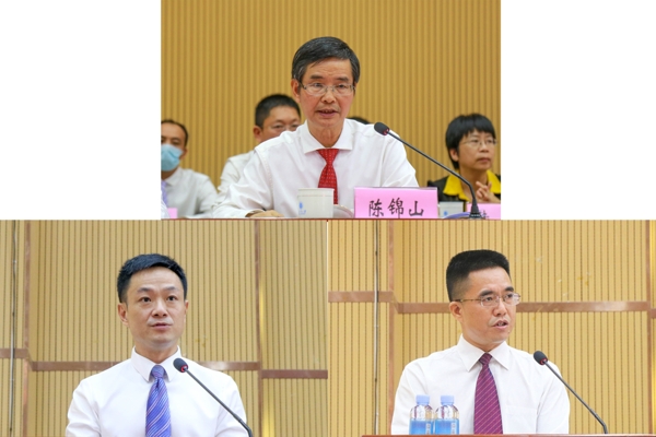 上图:陈锦山副书记主持大会 左下图:陈湘如副书记致开幕辞 右下图:梁智总会计师作学校财务工作报告
