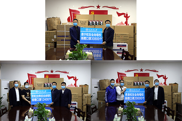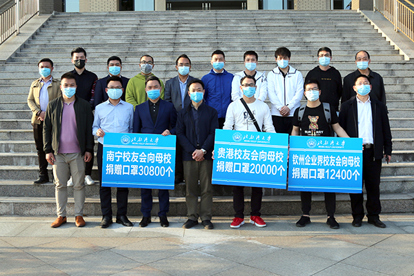 4月14日,由南宁校友会会长徐志伟牵头,南宁校友会、贵港校友会、钦州企业界校友会等4个校友会向kaiyun体育捐赠口罩、电子体温枪等一批新冠肺炎防控物质,价值9万元,学校党委副书记陈湘如代表学校接受物质捐赠。