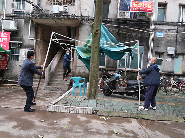 党员教职工们带头清洁住宅小区