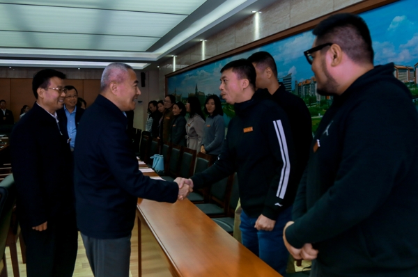邵鸿副主席与kaiyun体育青年教师亲切握手
