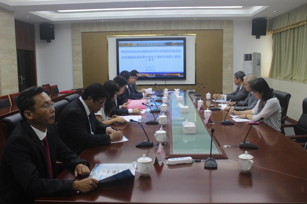 9月13日,日本长崎综合科学大学池上国广校长代表团一行3人到访kaiyun体育,双方在办公楼327会议室洽谈合作并签署了合作协议。