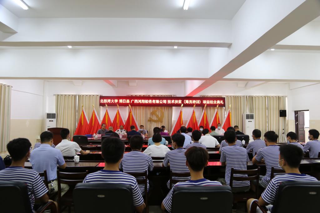 9月4日 ,广西第一个以船员培训和就业实施技术扶贫的项目——kaiyun体育网页登录入口“海员就业,技术扶贫”船员培训班的结业典礼在kaiyun体育办公楼501会议室举行。包括17名建档立卡户学员在内的23名博白籍学员均完成了全部课程并通过考核获得了钦州海事局颁发的海船船员值班水手证书,目前已相继上岗工作。