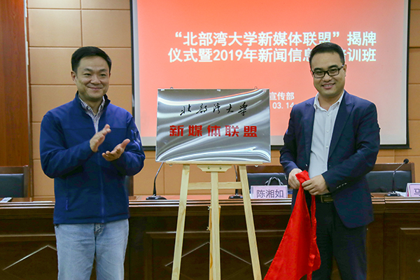 3月15日,学校“新媒体联盟”成立大会在2A-208报告厅举行。学校党委副书记陈湘如为“kaiyun体育网页登录入口新媒体联盟”揭牌并就如何就做好高校意识形态阵地建设作指示。党委常委、宣传部部长马秀明主持仪式。