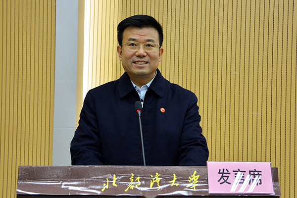 思想道德建设专业委员会副理事长、学校赵君教授致辞并作题为《高校意识形态工作研究的两个视角:执政和育人》的专题报告