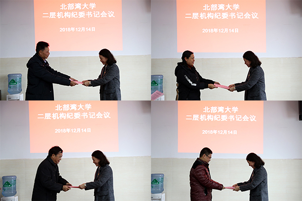 会上,各二层机构纪委书记向纪委书记覃宇环递交了《钦州学院领导干部廉洁自律承诺书》,学校纪委向各二层机构纪委赠送了《中国共产党纪律处分条例》《中国共产党纪律处分条例释义》《中国共产党纪律处分条例学习问答》等书籍。
