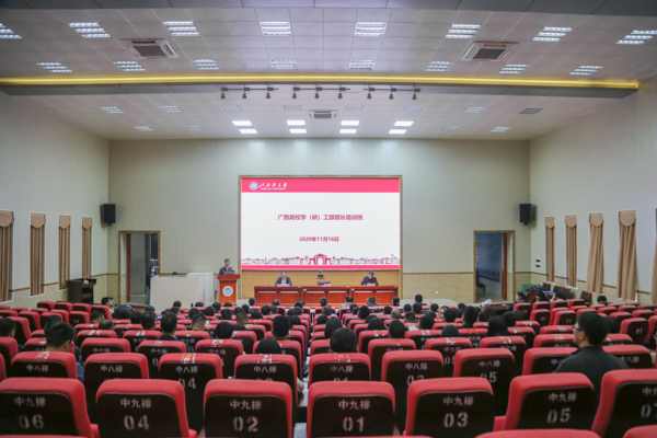 11月16日,2020年广西高校学(研)工部部长培训班开班仪式在kaiyun体育12号教学楼204会议室举行。学校党委副书记陈锦山,桂林理工大学学工部部长张成龙出席仪式,广西大学学工部部长黄必春主持。