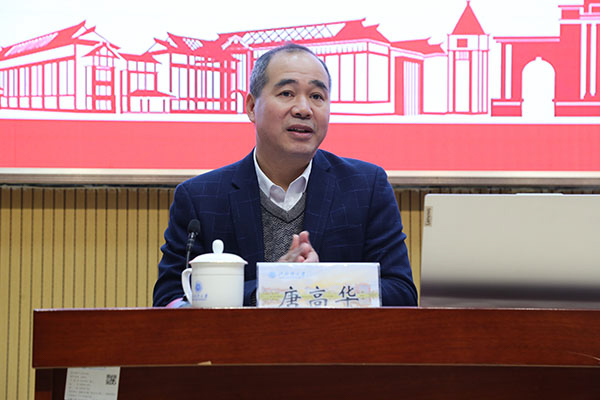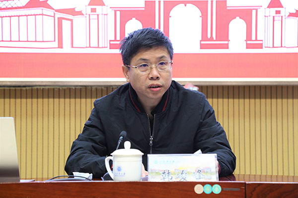 当天,学校在12号教学楼204室召开指导主题报告会。学校校长韩峻峰致欢迎辞,校党委常委、副校长唐高华、陈磊分别主持上下午的大会。