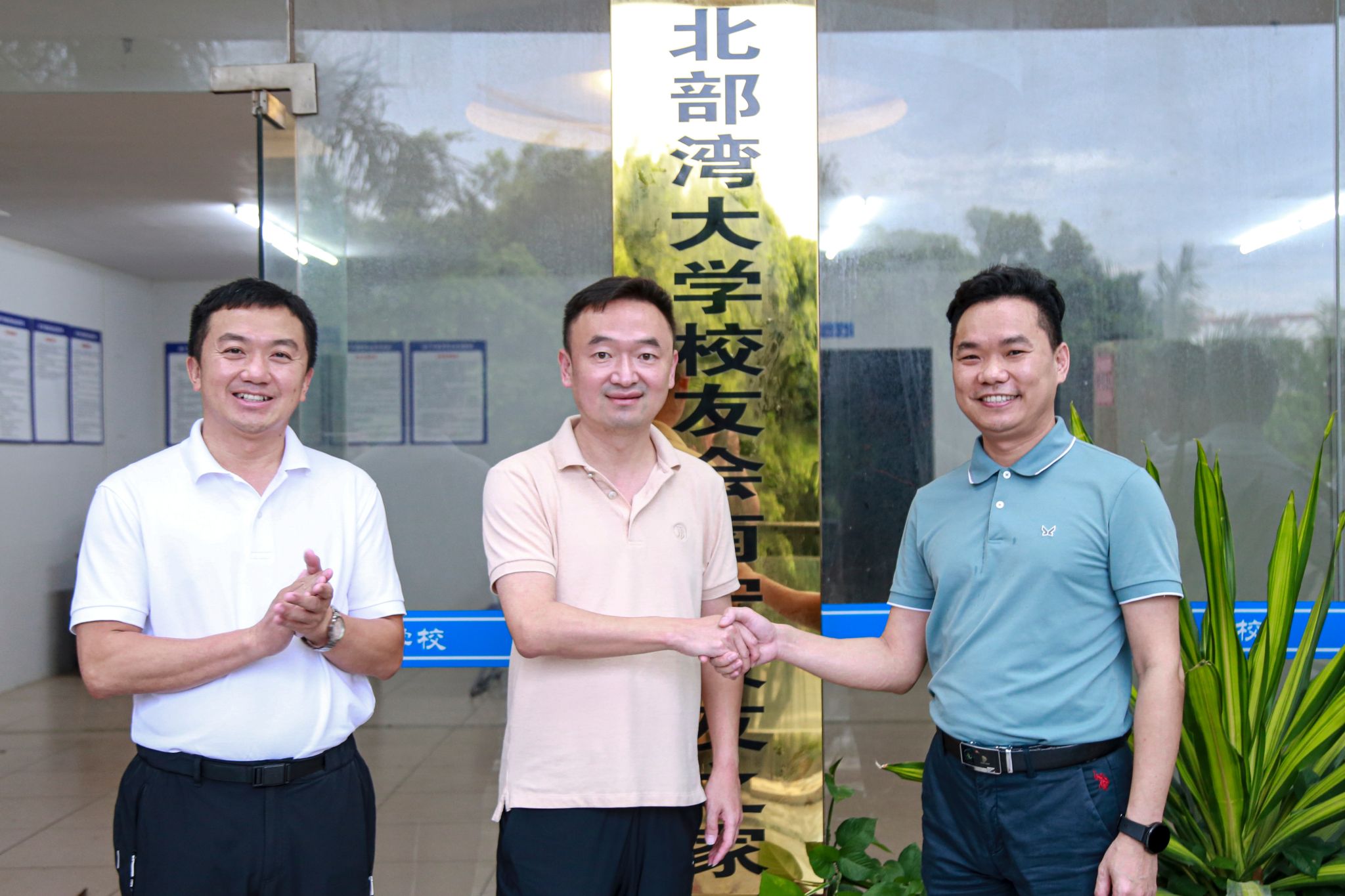 苗剑(左二)、陈磊(左一)赴南宁看望校友