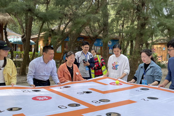 心理素质拓展活动是此次现场教育活动的压轴,参训人员分为4组进行数字漫游、珠行万里、搭桥过河三个项目的比拼,大家群策群力,团结协作,你追我赶,加油声此起彼伏,气氛热烈。