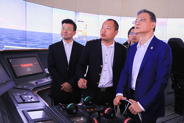 魏然书记一行参观海运学院一体化航海模拟实验室