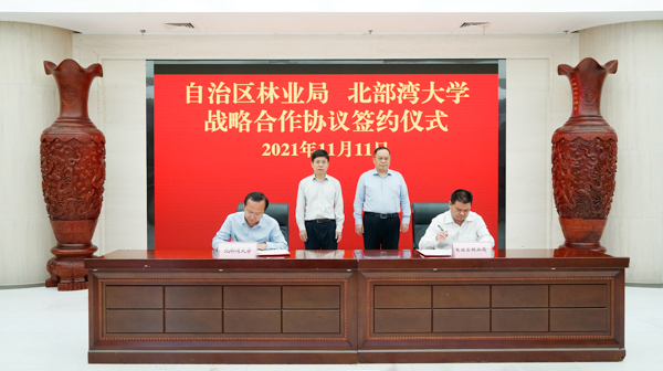 11月11日下午,学校与广西壮族自治区林业局战略合作协议签订仪式在自治区林业局办公楼一楼大厅举行。自治区林业局党组书记、局长黄显阳,学校党委书记韩峻峰出席并见证签约仪式。学校副校长黄鹄、自治区林业局副局长黄政康分别代表双方签订战略合作协议。