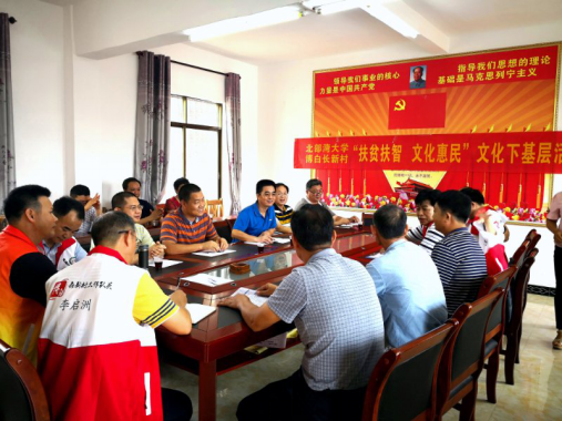 “扶贫扶智文化惠民”文化下基层座谈会在长新村村委召开,座谈会上,梁智总会计师向村两委干部调研文化帮扶事宜。学校图书馆与长新村村委达成了共建农家书屋共识,为建设农家书屋赠送了图书和电子资源。梁总会计师表示,今后将继续组织学校教职工及学生志愿者到定点帮扶村开展文化惠民下乡活动,包括共建图书室、开展读书活动、文艺表演等,丰富群众精神文化生活,增加乡村文化供给,扶贫扶智,文化惠民,助力脱贫攻坚。