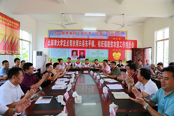 座谈会上,赵君书记和博白县委书记罗宗光及相关县政府部门领导、乡镇领导及驻村第一书记,共同研究推进脱贫攻坚工作和脱贫攻坚共建项目合作事宜,参会人员重点围绕加强农产品采购促进消费扶贫、开展船员驾驶食品安全检测等专业技能培训、国家通用语言文字推广等帮扶合作项目进行深入探讨,并达成合作意向。