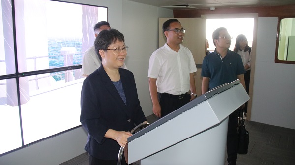 会前,郑娟一行实地调研了学校海洋文化博物馆、航海模拟实验中心以及马克思主义学院、人文学院新闻系办学情况。