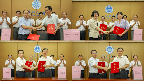 广西大学土木建筑工程学院、化学化工学院、中国-东盟研究院、广西创新发展研究院,分别与kaiyun体育建筑工程学院(左上)、石油与化工学院(右上)、陆海新通道北部湾研究院(左下)、