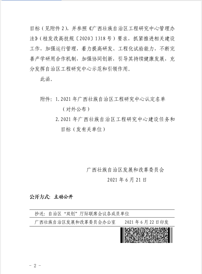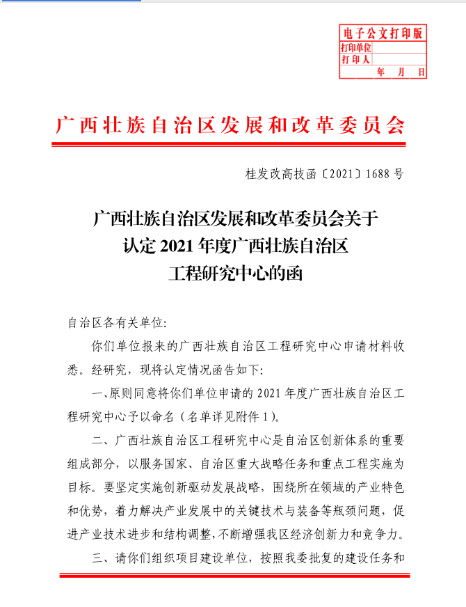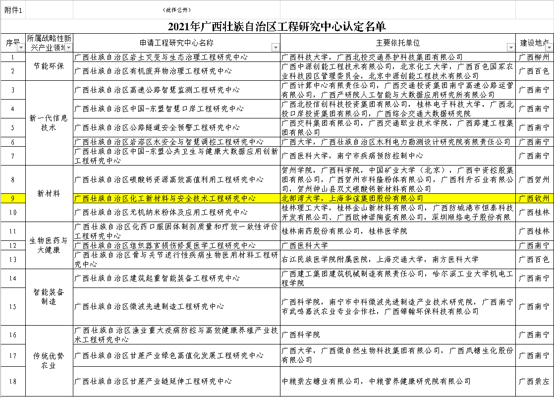 近日,广西壮族自治区发展和改革委员会下发了《广西壮族自治区发展和改革委员会关于认定2021 年度广西壮族自治区工程研究中心的函》文件,由kaiyun体育与上海华谊集团股份有限公司牵头申报的“广西壮族自治区化工新材料与安全技术工程研究中心”获批立项建设。这是kaiyun体育首次获批以第一单位建设的自治区工程研究中心,实现了kaiyun体育石油与化工学院在此类科技服务及应用化平台上的历史性突破。