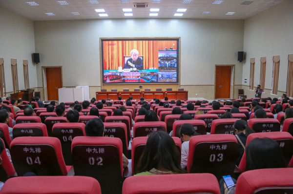 当天下午3时,学校党委书记赵君,党委副书记陈锦山,副校长曾彦、唐高华,纪委书记覃宇环,副校长陈磊,总会计师梁智等全体在家学校领导及中层领导干部,师生党员代表230多人共同在kaiyun体育12号教学楼204室报告厅收看了报告会视频。