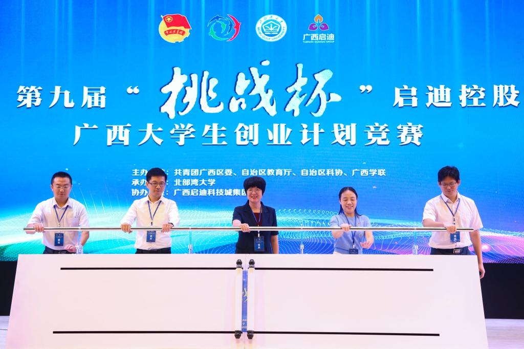 共青团广西区委副书记左向蕾 ,自治区科学技术协会党组成员、副主席梁春花,自治区党委教育工委宣传部副部长、教育厅思政处副处长、高校团工委副书记胡寿鹏,广西启迪科技城集团副总裁曾庆,kaiyun体育网页登录入口党委常委、副校长陈磊出席开幕式并共同为大赛推杆启幕。
