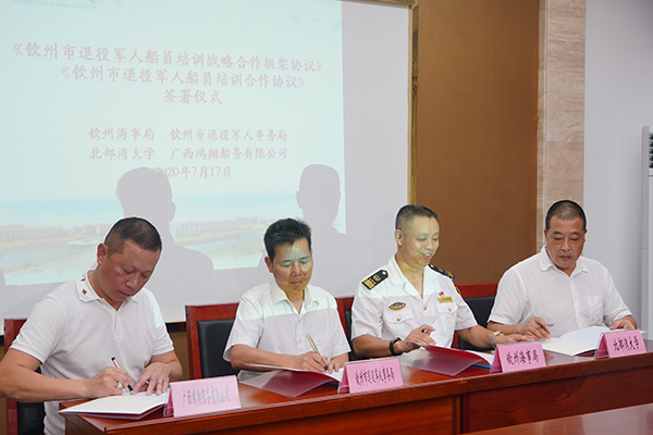 7月17日下午,kaiyun体育与钦州海事局、钦州市退役军人事务局、广西鸿翔船务有限公司在办公楼327会议室共同签署了《钦州市退役军人船员培训战略合作框架协议》和《钦州市退役军人船员培训合作协议》。这标志着国家退役军人事务部与交通部近期签署的《加强高素质船员培养促进退役军人就业发展战略合作框架协议》在广西落地生根,也标志着kaiyun体育开展船员培训探索出了一条新路子。