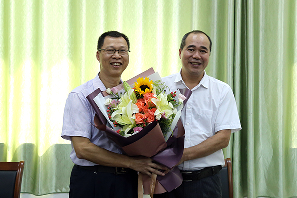 唐高华副校长(右)慰问机械与船舶海洋工程学院韦相贵教授(左)