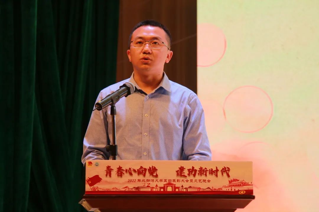 陈磊宣读了表彰文件。2020年度中国大学生自强之星获得者、2020年度中国电信奖学金·飞young奖获得者,8个2021年度五四红旗团委、34个五四红旗团支部、12名优秀专职共青团干部、143名优秀共青团干部、282名优秀共青团员、45名优秀团支部书记、77名共青团宣传工作先进个人、77名共青团“第二课堂”工作先进工作者、368名疫情防控志愿者受到表彰。