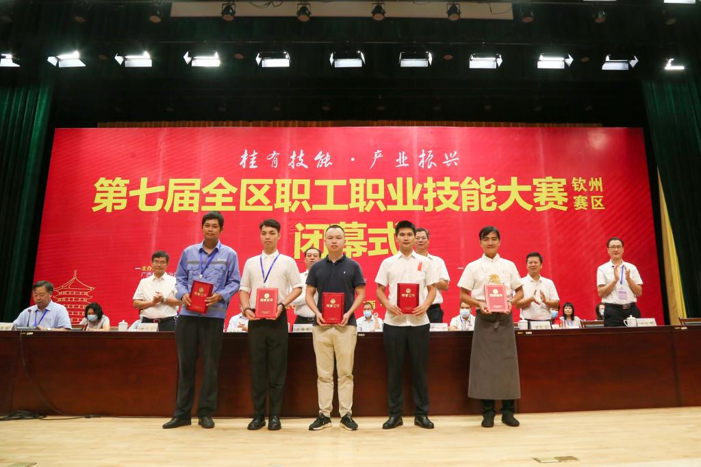 9月1日,第七届全区职工职业技能大赛(钦州赛区)在kaiyun体育礼堂举行闭幕式。自治区总工会党组成员、经费审查委员会主任黄海华,钦州市人大常委会副主任、总工会主席黄源扬,校党委副书记、工会主席陈锦山出席闭幕式并为获奖选手颁奖。