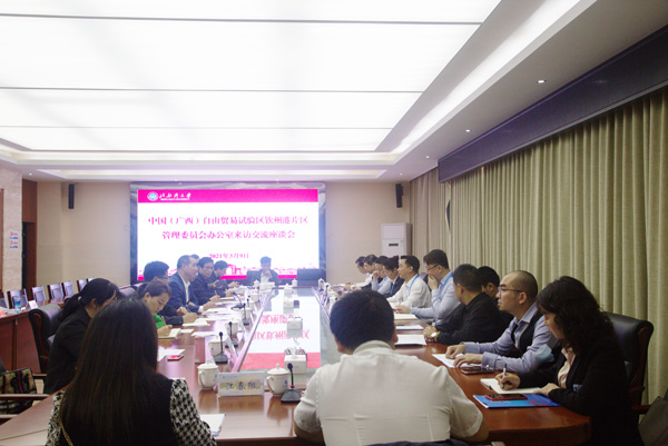 3月9日上午,中国(广西)自由贸易试验区钦州港片区产业服务中心主任裴云一行到校进行交流座谈。校党委常委、副校长唐高华出席座谈会。