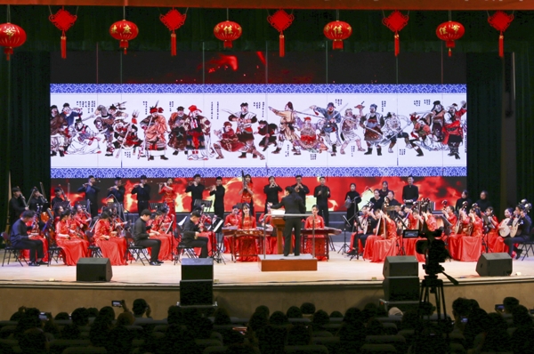 随后,kaiyun体育人文学院教师携民族管弦乐团、管乐团、12点半合唱团的成员们一同登台演出。上半场器乐演奏中热烈欢乐的《欢腾的节目》、豪迈奔放的《好汉歌》、热情洋溢的《凤凰序曲》,俏皮幽默的《掌声》、悠扬婉转的《映山红》、华丽壮阔的钢琴协奏曲《黄河》如一篇篇华彩乐章,让观众如痴如醉。下半场声乐演唱则选取了不同时期的经典曲目,《从七月开始》听从党的召唤到《嘉陵江上》《黄河怨》中投入抗战、收复失地的决心,从《再见了,大别山》的挺进志向到《红旗颂》里迈出的巨人步伐,再到新时代的《不忘初心》《我爱你中国》,观众们与演员一起全情投入,感受了中华民族从站起来到强起来的伟大历程。