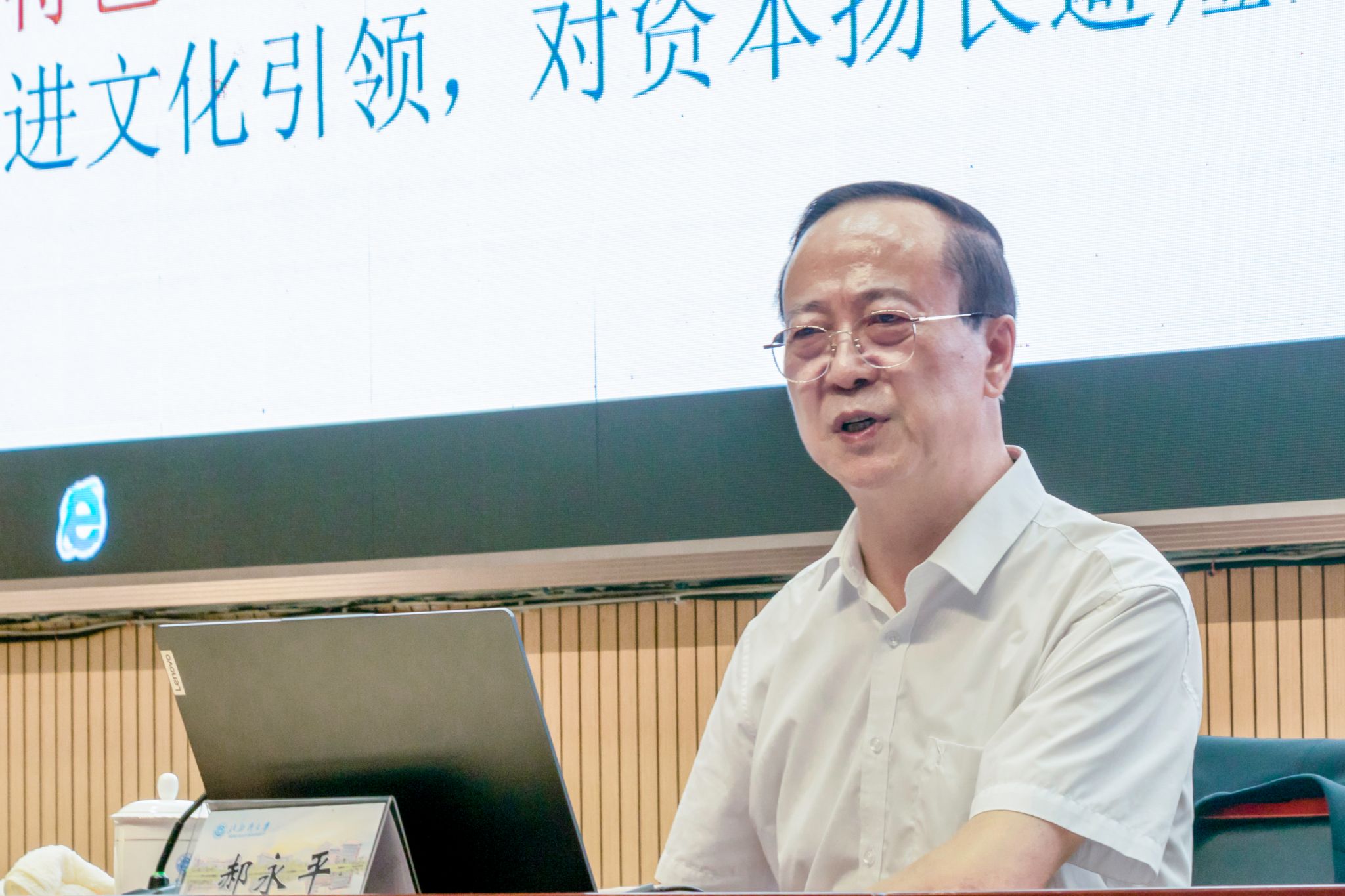 在12号教学楼204报告厅,郝永平教授结合自己在哲学领域的研究,从中国式现代化的历史考察、理论把握、世界观照三个方面进行讲授,深刻阐述了中国式现代化的鲜明特征、本质要求、战略安排和重大原则。他指出,中国式现代化是我们党领导人民长期探索和实践的重大成果,也是强国建设、民族复兴的唯一正确道路,要实现中国式现代化必须要坚持中国共产党的领导,顺应时代潮流,追赶现代化,以中国式现代化全面推进中华民族伟大复兴。