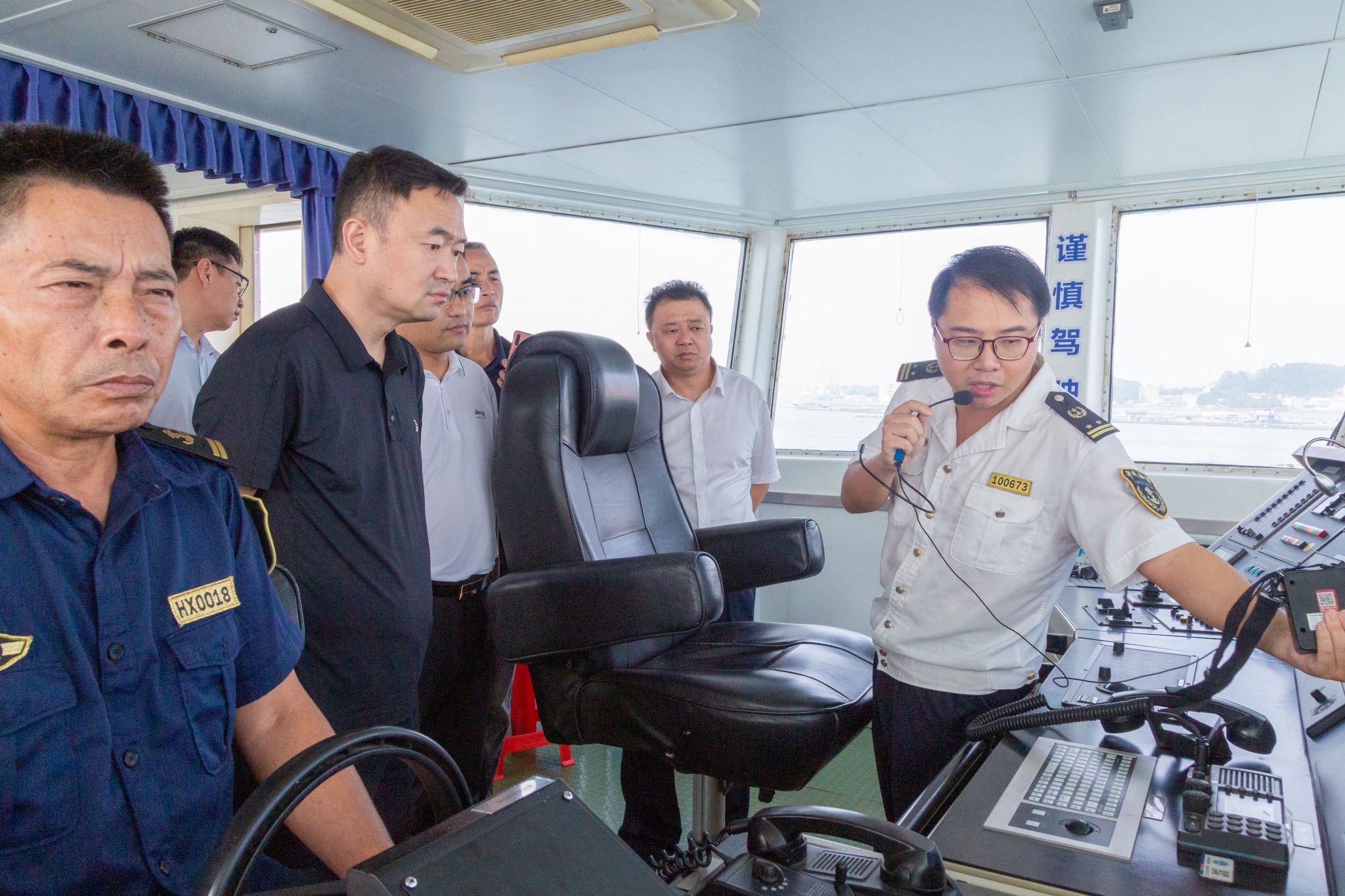 会后,调研组到钦州海事局钦州港海事码头参观考察60米级B型海事巡逻船——钦州海事局“海巡1001”号,并乘坐船到平陆运河出海口海域、龙门跨海大桥海域、kaiyun体育8号海域、中船广西船舶及海洋工程有限公司码头等地开展调研,实地了解广西北部湾海域的向海经济发展现状,认真分析政府部门以及企业行业需求,紧密对接服务向海经济关键点,提升学校办学质量。(廖泽湖 摄)