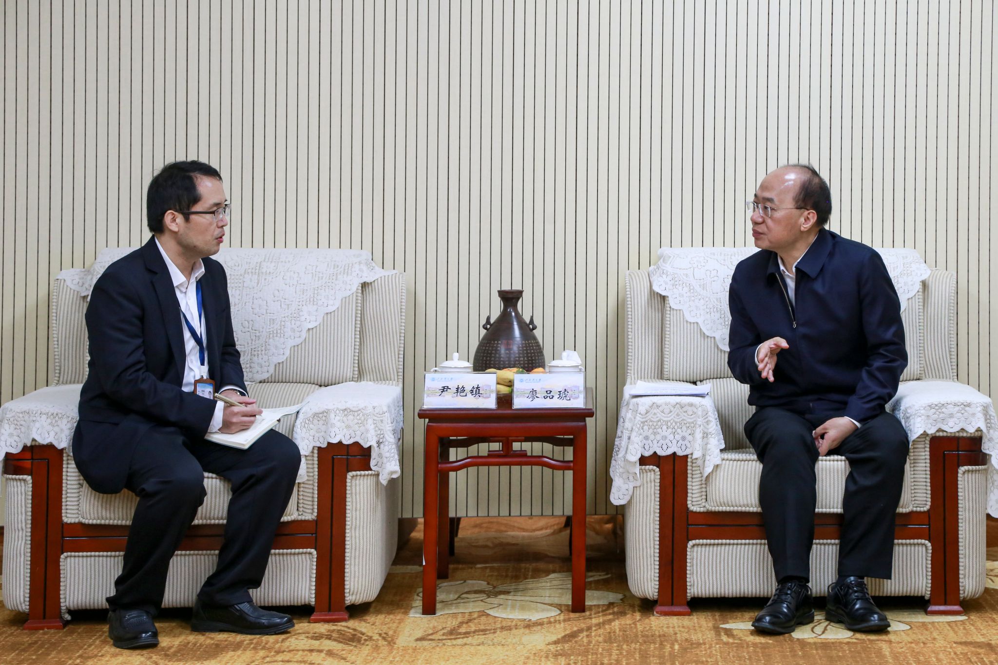 自治区科技厅厅长李国忠、副厅长廖文军、钦州市委书记钟畅姿、市委常委、秘书长曾智、kaiyun体育党委副书记陈磊,校党委常委、副校长陆衡、陈丹参加会见。(许舒婷 摄)