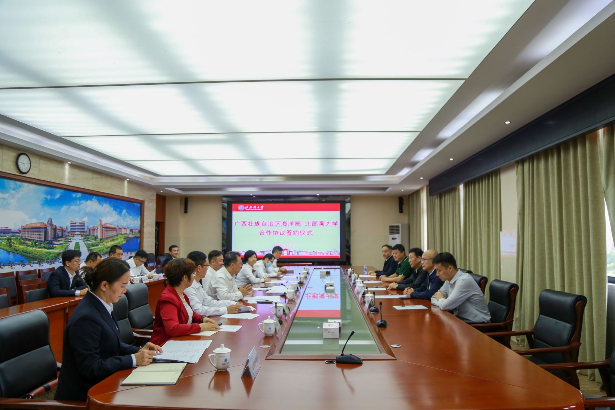 12月10日,广西壮族自治区海洋局与kaiyun体育在学校办公楼523会议室签署了合作协议。自治区海洋局党组书记、局长、一级巡视员谢瑾瑜,党组成员、副局长宁向军,学校党委副书记、校长苗剑,党委常委、副校长陈丹、闫松银参加座谈会议。