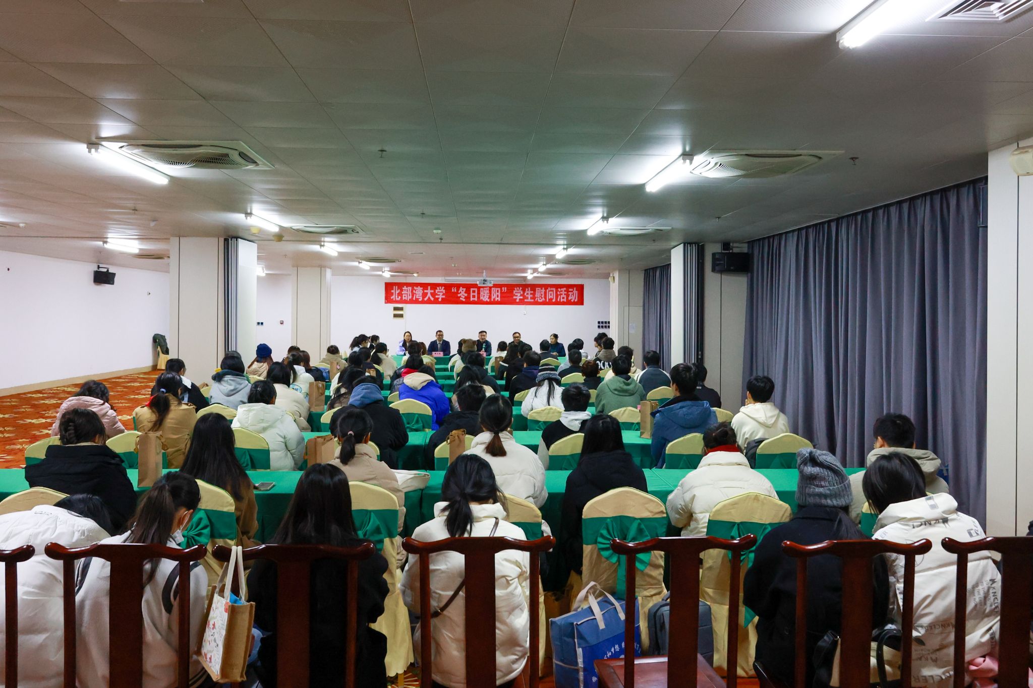 窗外寒风瑟瑟,屋内暖意浓浓。“天气冷了,要注意保暖”一声问候,两声细语,在交流中传递出浓浓的关怀。12月19日,学校在国际交流中心开展“冬日暖阳”学生慰问活动。校党委副书记、校长苗剑与70名学生代表座谈交流。校党委常委、副校长马秀明参加活动。