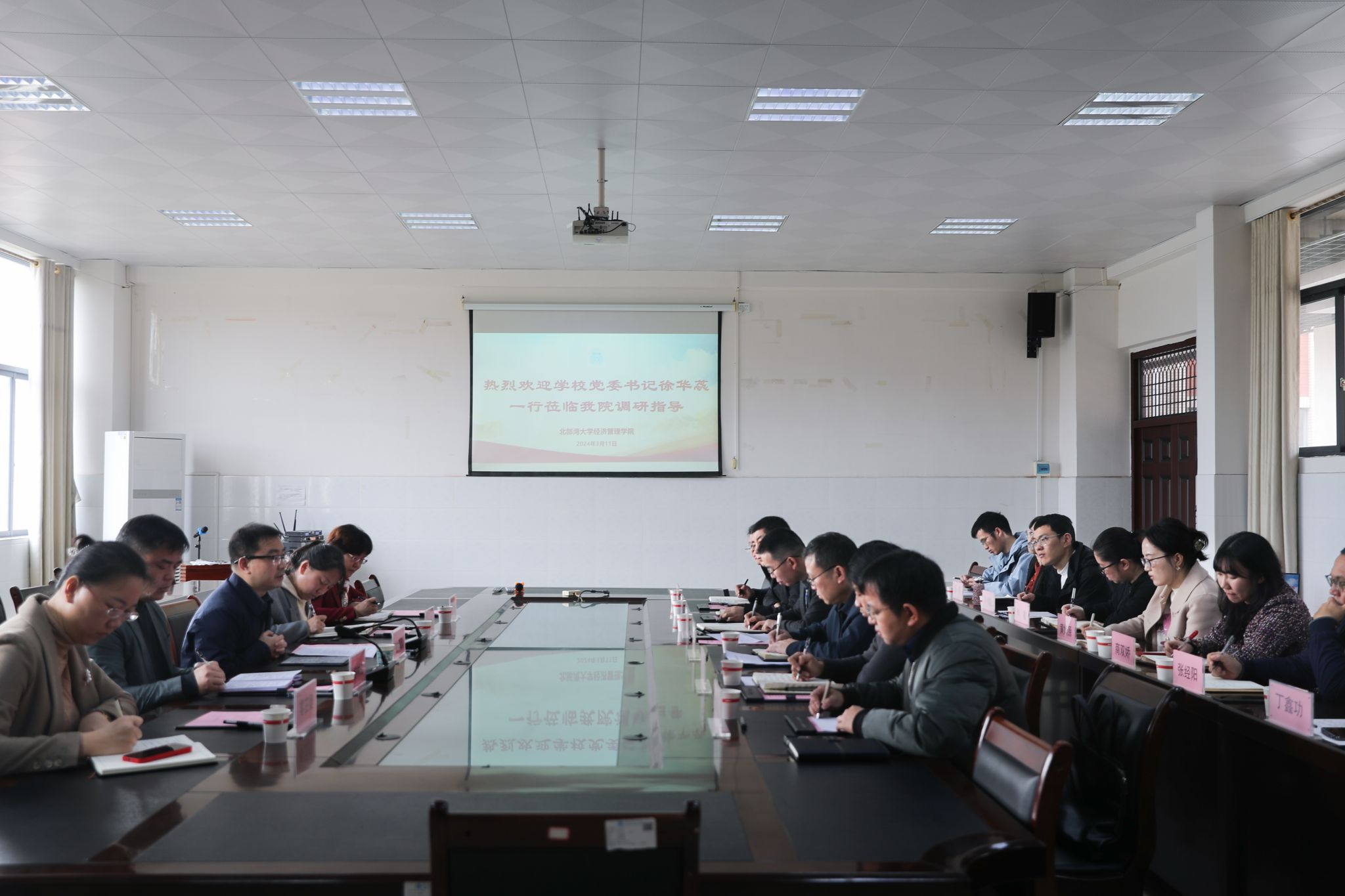 学校党办校办、党委组织部、党委学生工作部(处)、人事处、教务处、科技处、研究生院(研究生处)、财务处、国资处、后勤基建处、校团委等部门参加调研。
