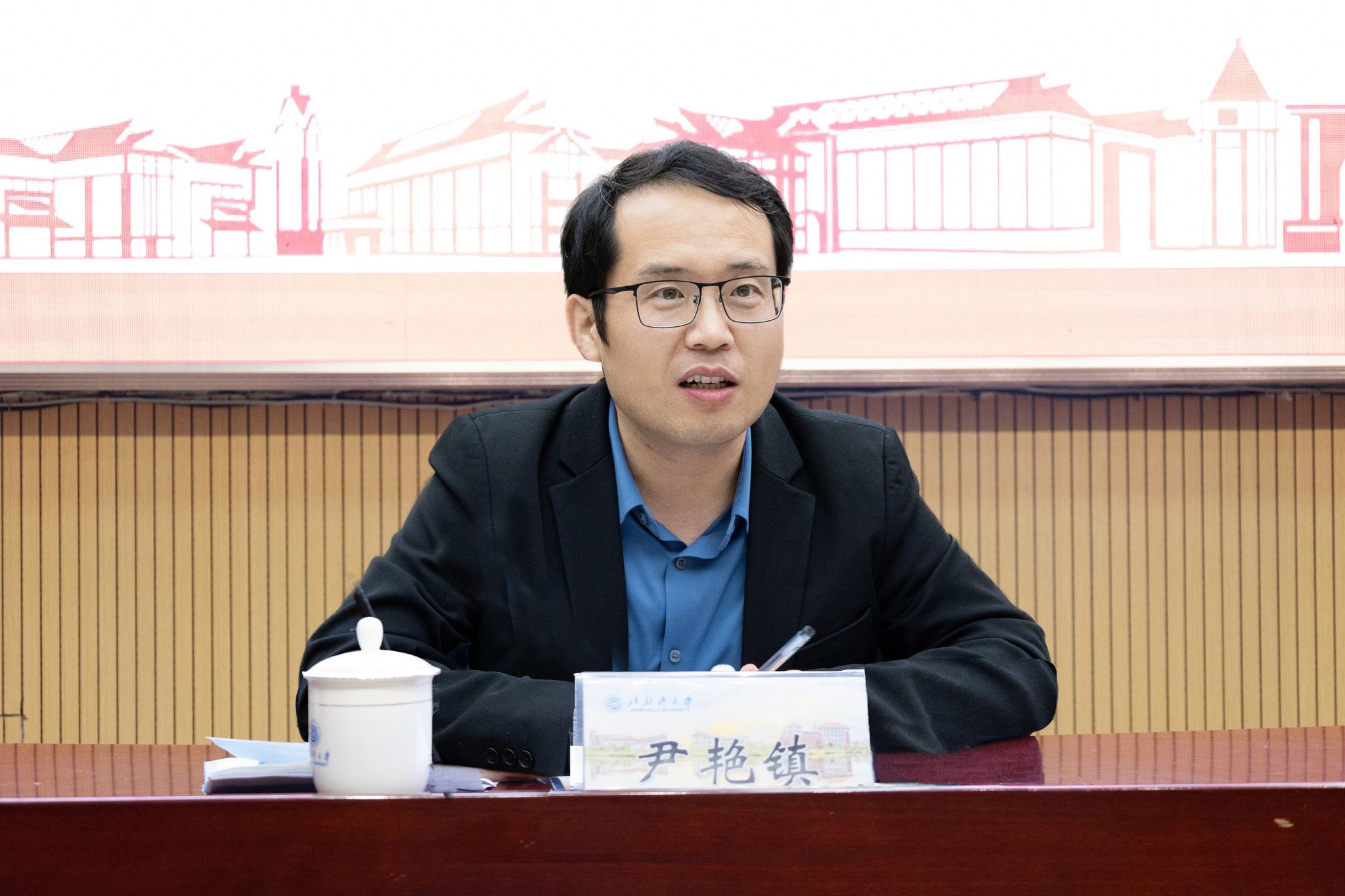 尹艳镇副校长通报了上一轮教学审核评估整改情况、审核评估工作推进情况