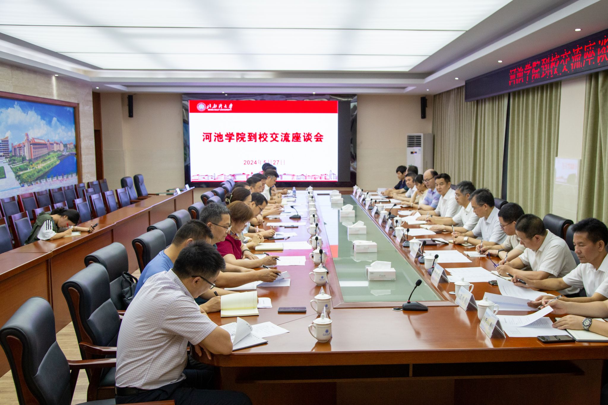 苗剑表示,在河池学院的工作经历给他提供了莫大的经验支持。他指出,两校在办学特色、人才培养、招生录取等方面有许多可以相互学习借鉴之处,希望两校能充分利用双方各自优势,共同在人才培养、项目培育、团队建设、交流合作等方面作出新探索。