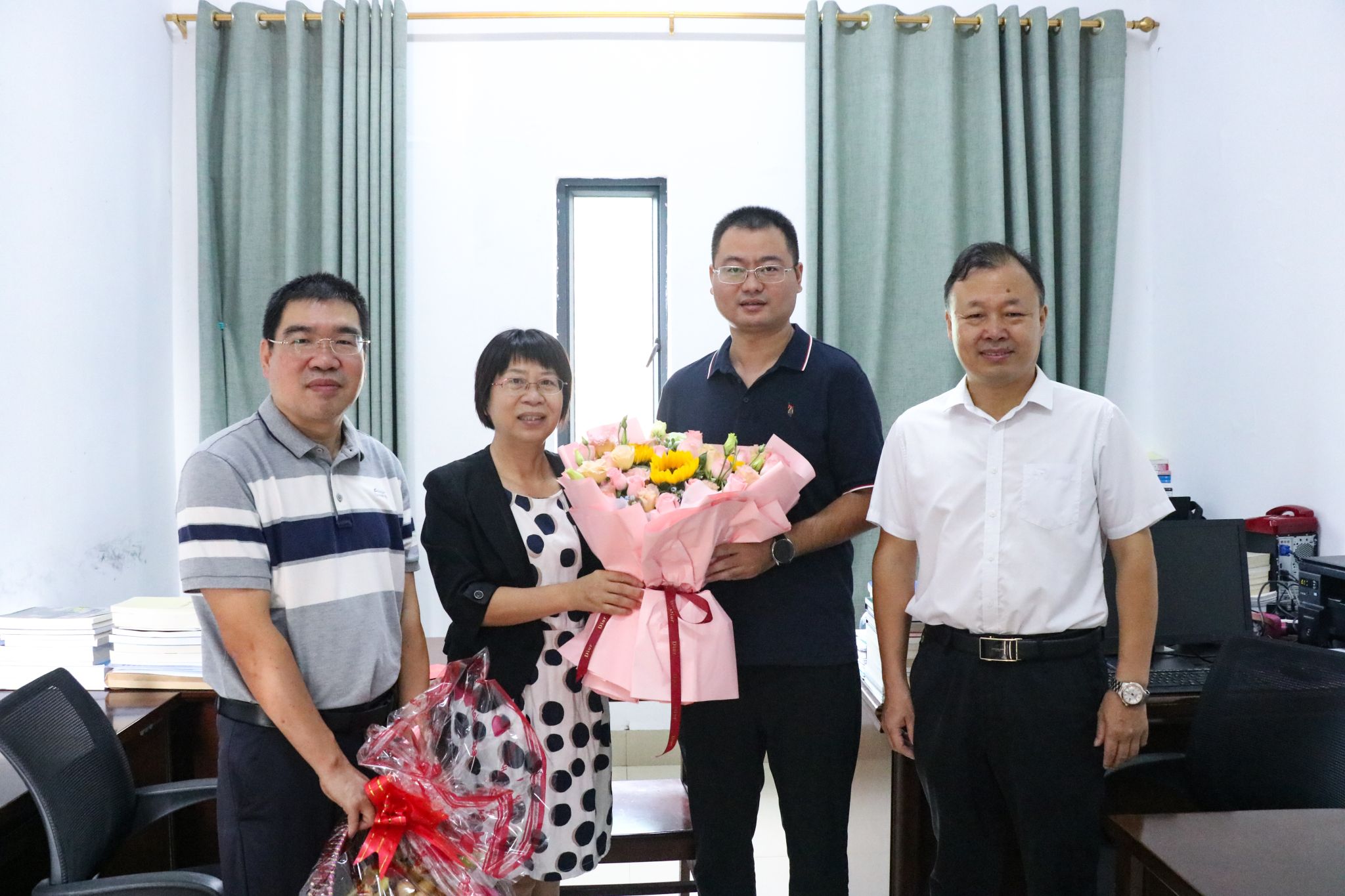 校党委常委、副校长陈丹(右二)看望慰问海洋学院一线教师代表
