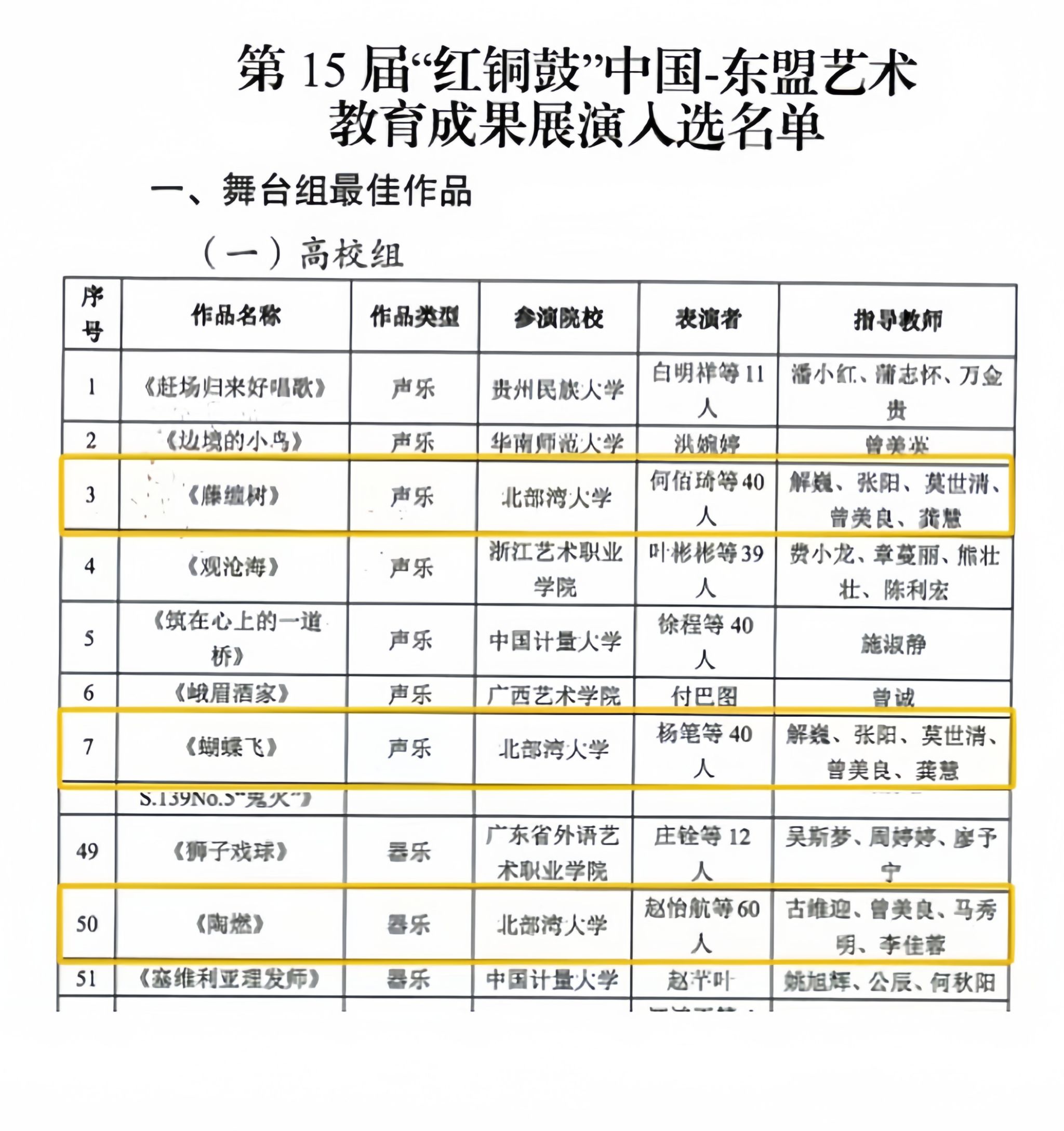 近日,自治区文化和旅游厅、自治区教育厅公布第15届“红铜鼓”中国—东盟艺术教育成果展演活动入选名单。kaiyun体育师生表现优异,共有19件作品获奖。