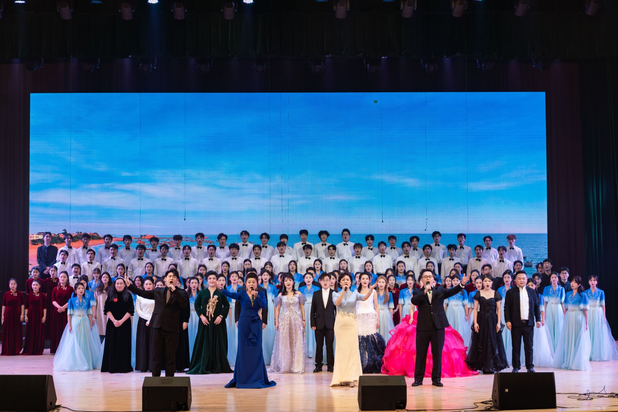 歌颂着梦想与远航的乐曲《通江达海启新航》开启音乐会第二篇章。颂赞自然之美、礼赞自由与勇气的军旅歌曲《我爱这蓝色的海洋》,体现着因海而兴、通江达海、向海图强的蓝色梦想。歌曲《我在运河上》和《我们是运河的流水》讲述运河的故事,展现运河的风采,唱出了运河梦与湾大梦的交织交融。在湾大原创作品《向海》充满希望和力量的旋律以及全场观众的热烈掌声中,新年音乐会圆满落幕。