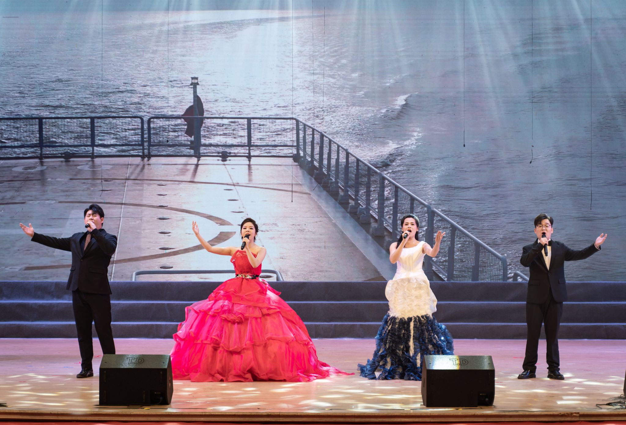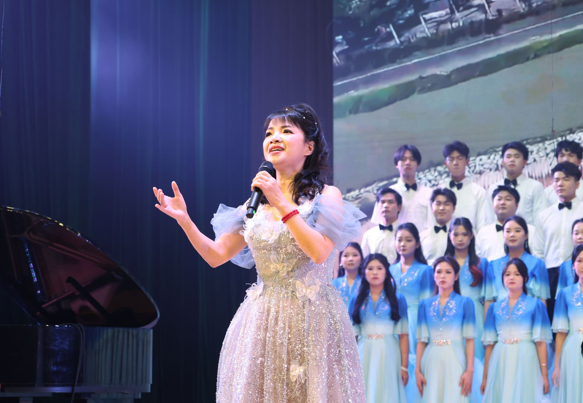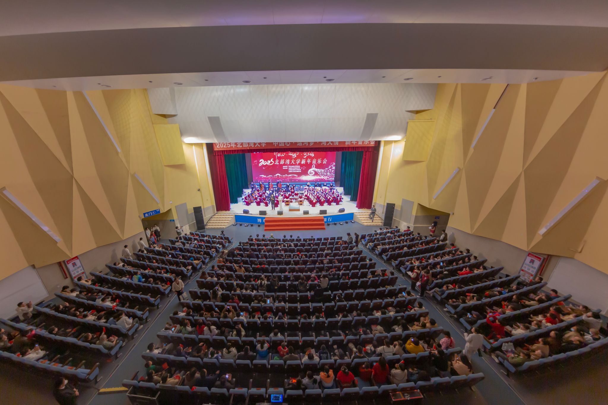 2025年新年音乐会以“中国心·运河梦·湾大情”为主题,在平陆运河之滨精彩上演。平陆运河,通江达海,承载着沿岸人民对美好未来的憧憬与梦想,将历史的深邃与未来的辉煌紧紧相连。音乐会节目精选运河元素原创佳作与经典曲目,生动展现了湾大师生服务运河建设和广西“一区两地一园一通道”建设,推动向海经济、促进开放开发的满腔热忱。悠扬动听的旋律抒发着湾大师生对祖国的深情厚爱与无限自豪。家国情怀与边疆风情交相辉映,向海图强的新姿态在极具地方特色的音乐中熠熠生辉。