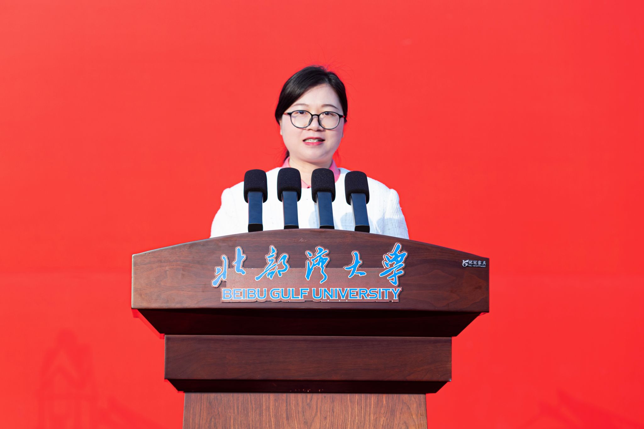 学校马克思主义学院教师邱静,经济管理学院城市管理专业23级学生贺睿希,钦州市义务教育教师代表施东娣作为师生代表上台发言。