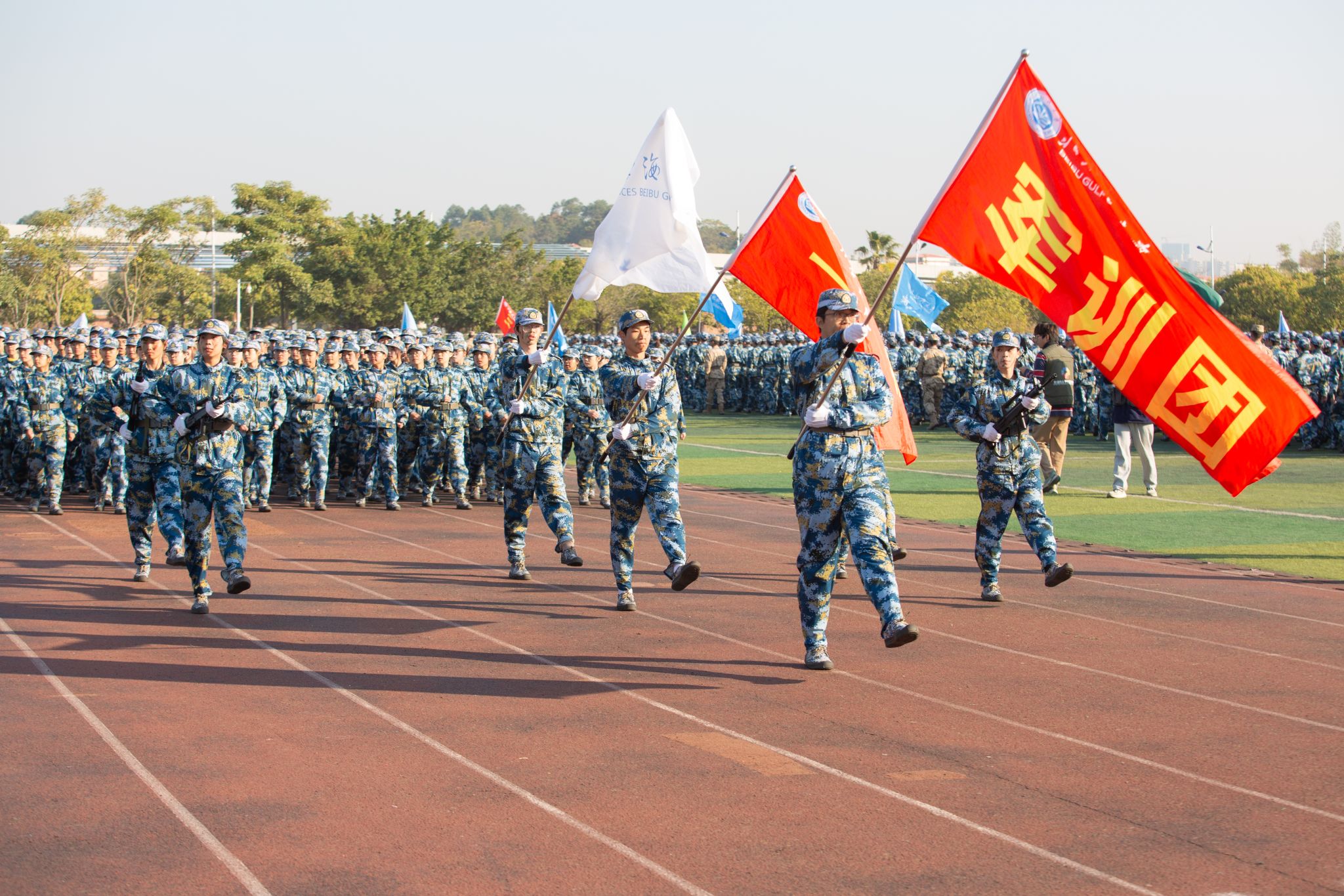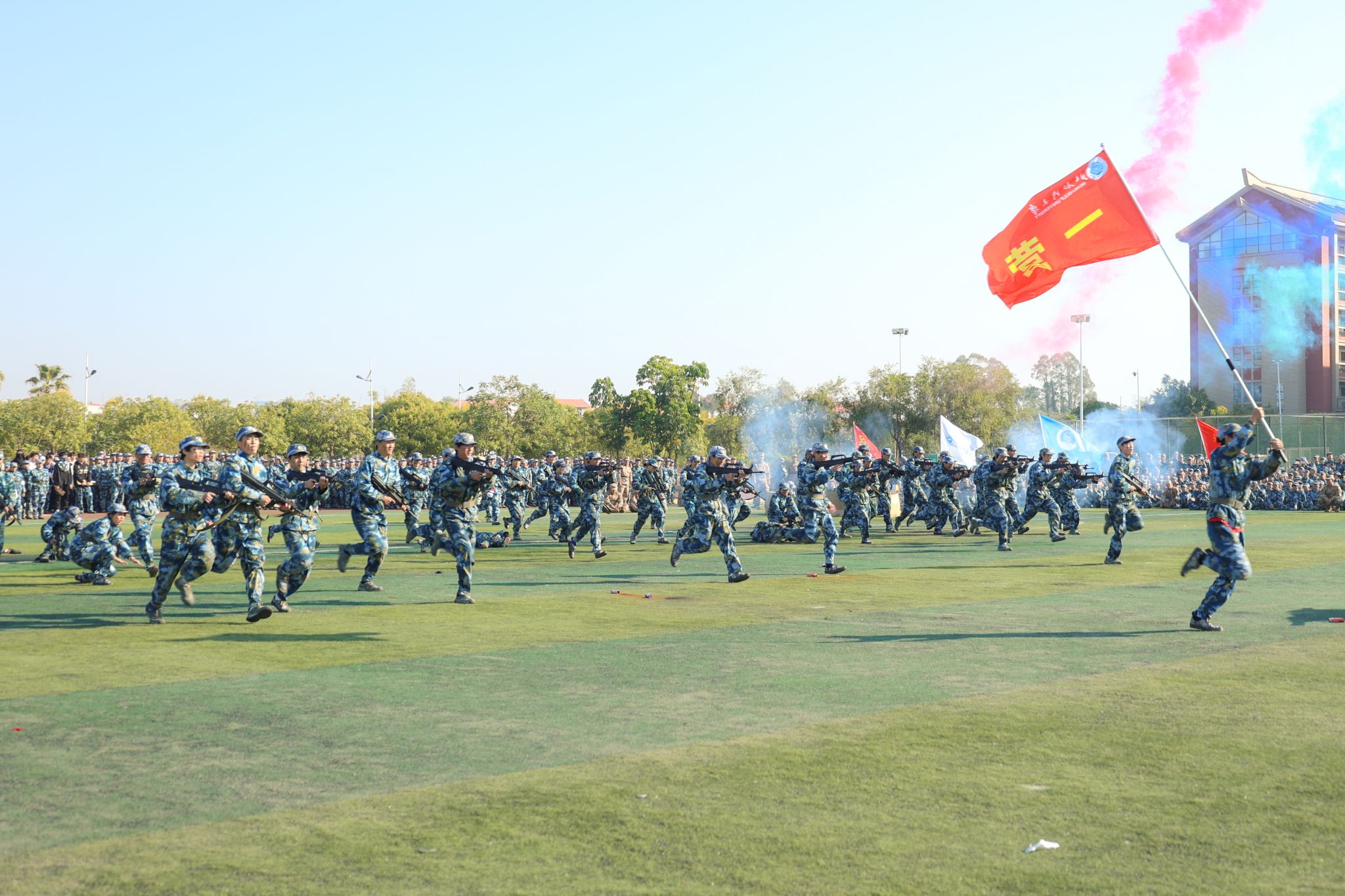 在庄严的国歌声中,大会正式拉开序幕。“标兵就位!”军旗飘飘,2024级学生经历了14天的军训磨炼,终于迎来了检验训练成果、展现青春风采的时刻。各方队昂首阔步、目光坚定,步伐整齐有力,口号响彻云霄,依次走过主席台。旗语方队、捕俘刀方队、捕俘拳方队、战术演练方队的展演气势恢宏、英姿飒爽。湾大学子以整齐划一的动作、震天动地的呐喊、配合无间的战术、冲破硝烟的英勇、取得胜利的欢呼,定格了一个个汗水与成长交织、磨砺与荣耀并存的难忘瞬间,充分彰显了严谨优良的作风、坚毅奋发的精神面貌和昂扬自信的青春朝气。