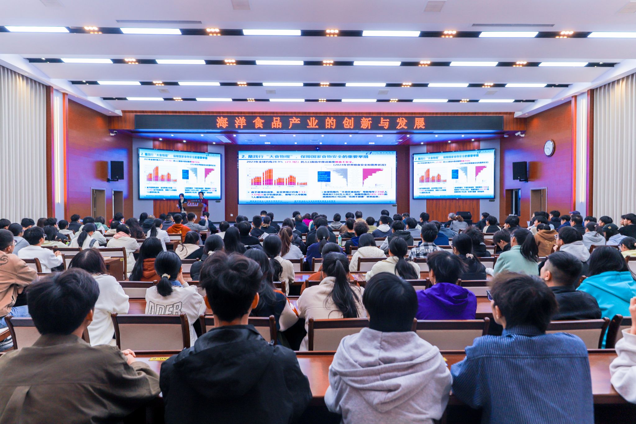 学校党政办、科技处、海洋学院、机械与船舶海洋工程学院、食品工程学院相关负责人和学术骨干参加座谈。海洋学院、机械与船舶海洋工程学院、食品工程学院师生代表160余人聆听报告。(李兴宸 摄)